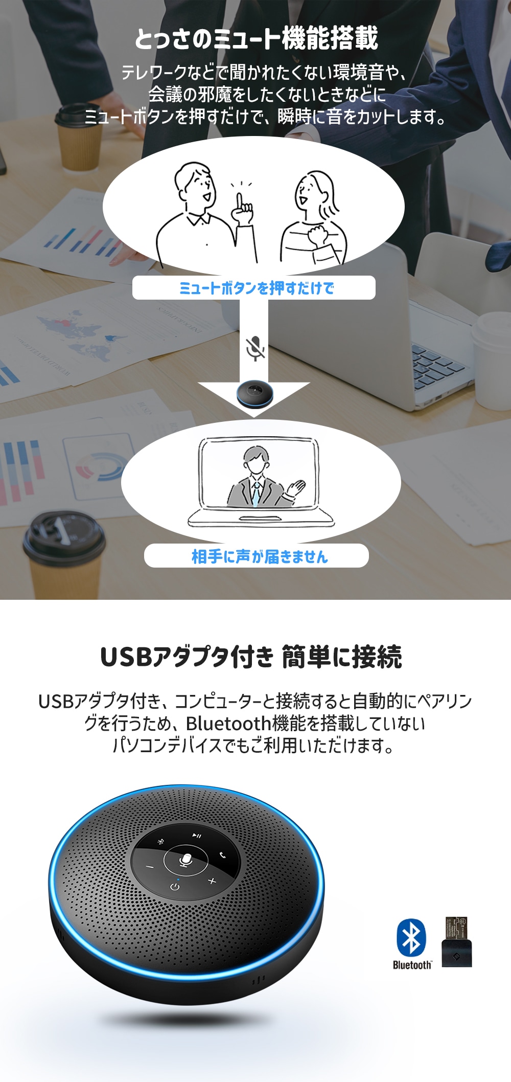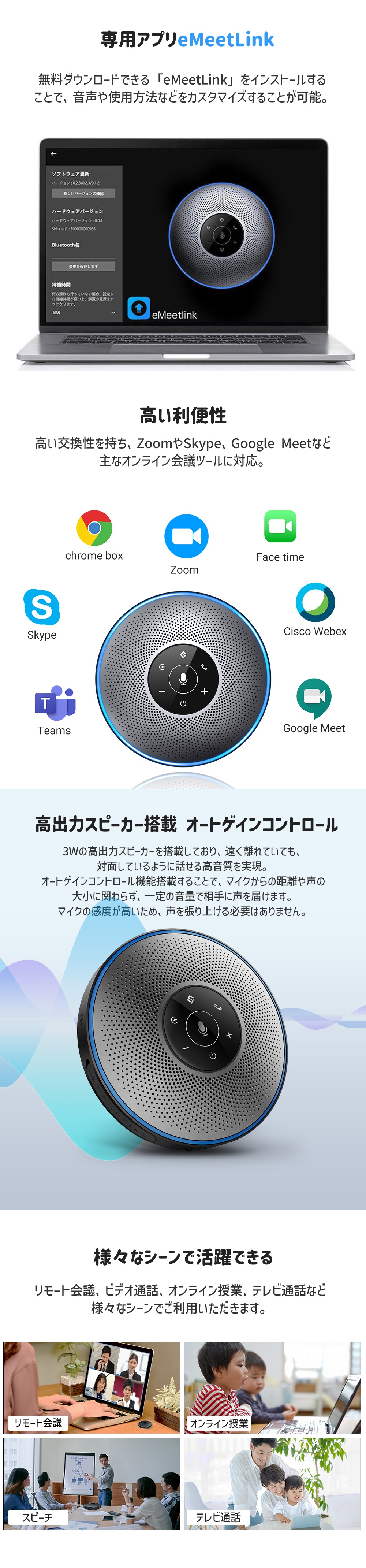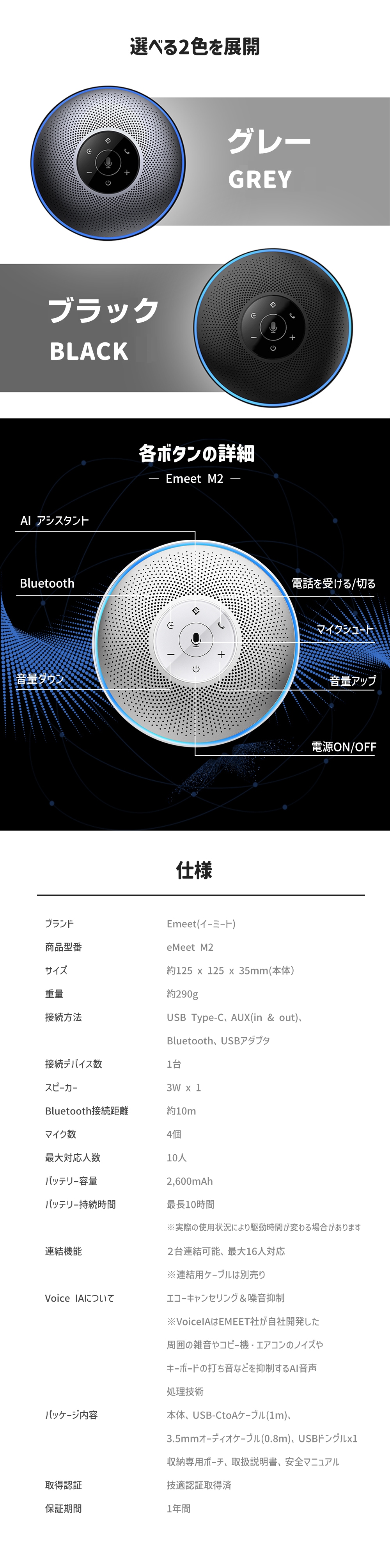 EMEET M2 ワイヤレス スピーカーフォン 会議 マイク スピーカー Bluetooth Skype Zoom 360度全方向集音 バッテリー内蔵 10時間連続使用 オンライン会議 テレワーク ウェブ会議 テレビ会議 2年保証