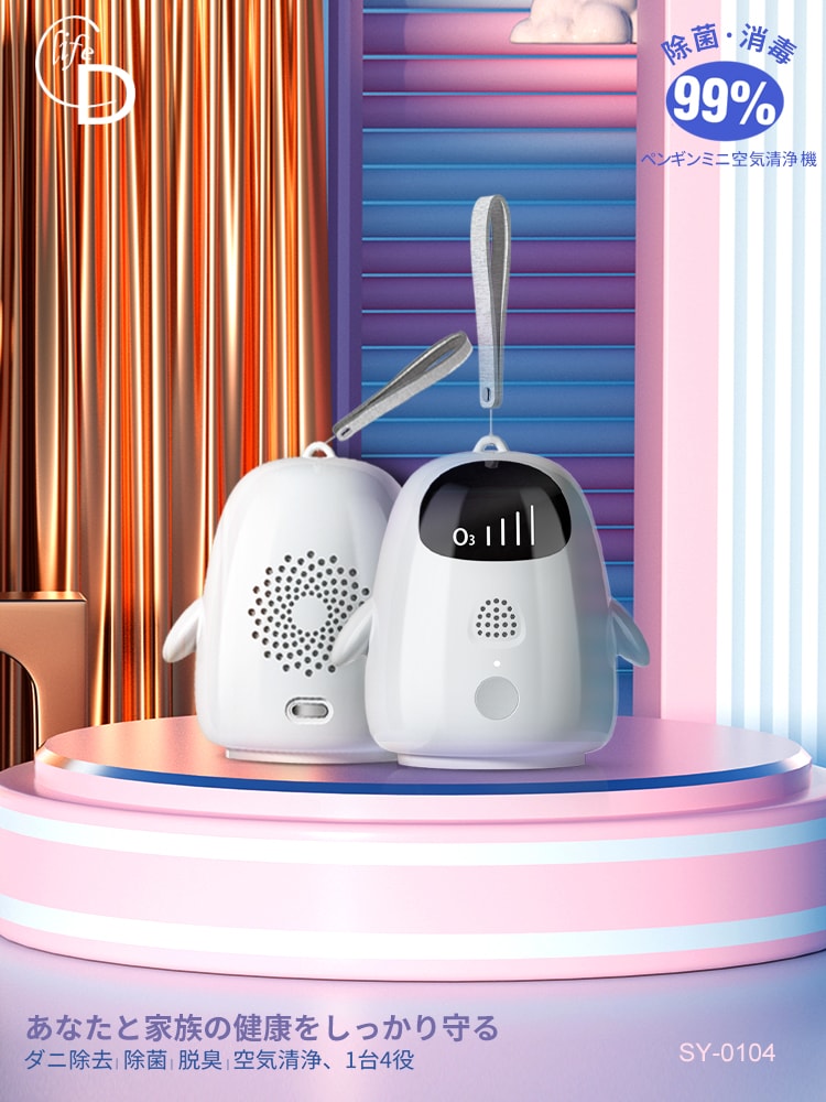 持ち運びできる空気清浄機|わずか5分で小空間のニオイを素早く除去|1台で除菌も安心|最大99%の除菌率、脱臭・ダニ除去を一度にすみずみまで!