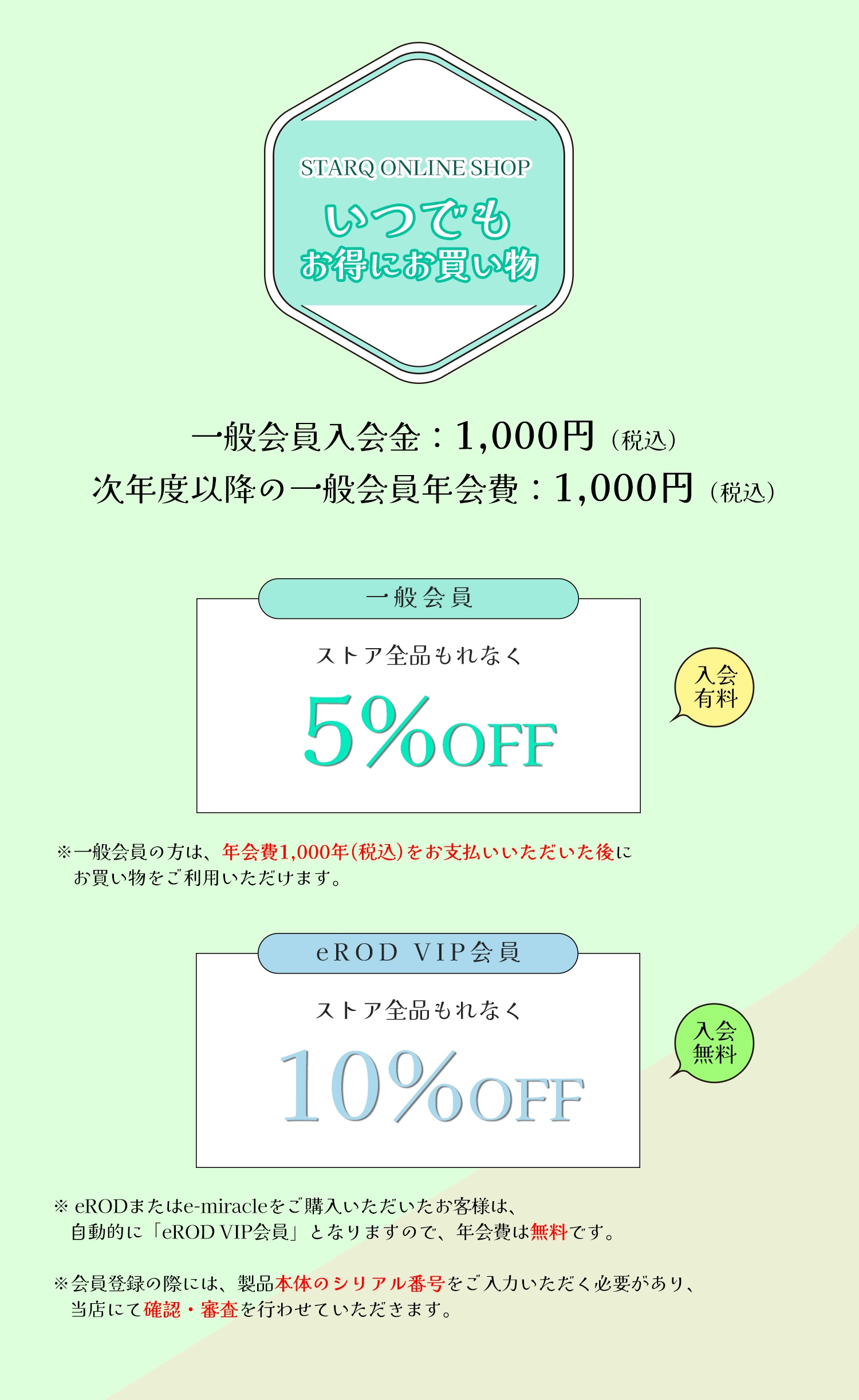 「一般会員」「eROD VIP会員」「eROD 代理店会員」いずれかの会員様以外は、当店でのお買い物はできません。あらかじめご了承ください。